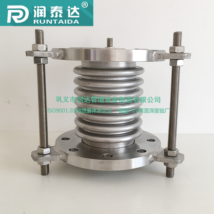 波紋膨脹節是用金屬波紋管制成的一種膨脹節。它能沿管道軸線方向伸縮,也允許少量彎曲。常見的軸向式波紋管膨脹節,用在管道上進行軸向長度補償。為了防止超過允許的補償量,在波紋管兩端設置有保護拉桿或保護環,在與它連接的兩端管道上設置導向支架。另外還有轉角式和橫向式膨脹節,可用來補償管道的轉角變形和橫向變形。這類膨脹節的優點是節省空間,節約材料,便于標準化和批量生產,缺點是壽命較短。波紋管膨脹節一般用于溫度和壓力不很高、長度較短的管道上。隨著波紋管生產技術水平的提高,這類膨脹節的應用范圍正在擴大。目前,波紋管膨脹節可用在*高壓力6.0兆帕的管系中。